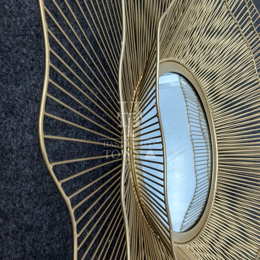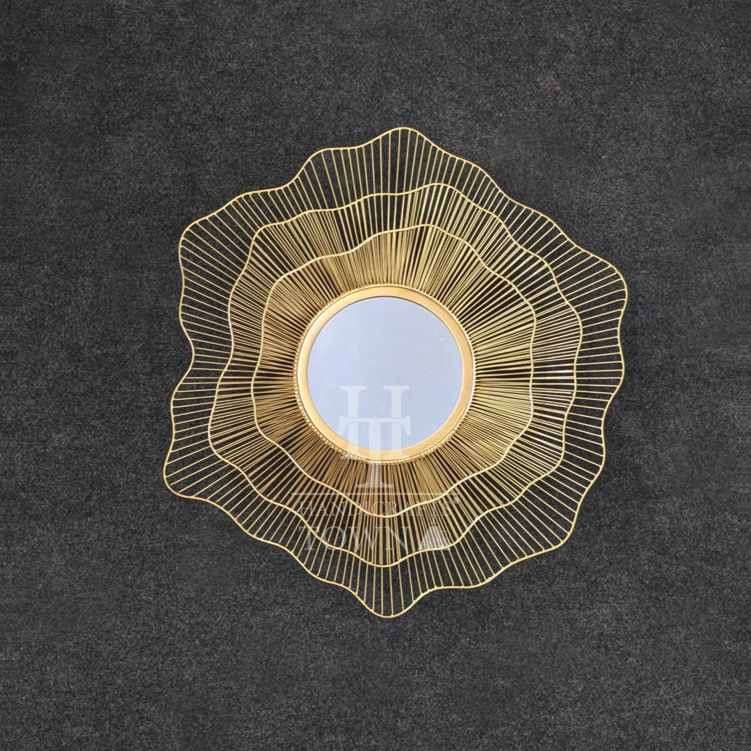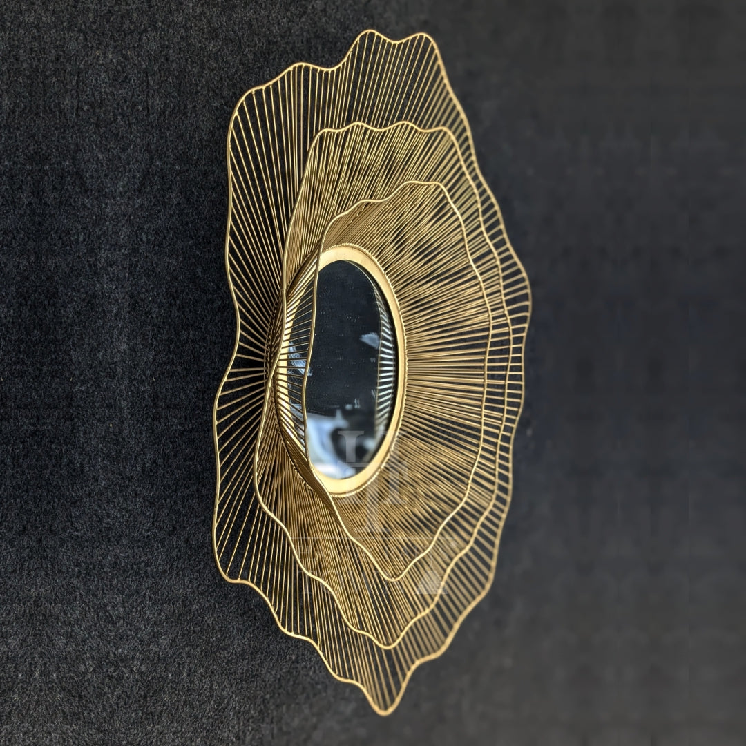 The Anemone Gold Wall Mirror is a stunning piece of wall art that effortlessly blends elegance and versatility. Its three-layered wire frame creates a captivating flower-like design, adding a touch of nature-inspired charm to any space. The rich golden finish exudes a sense of luxury, while the circular mirror reflects light beautifully, creating a warm and inviting ambiance. Whether you prefer a modern, minimalist look or a classic, traditional aesthetic, this mirror seamlessly blends in. Its eye-catching design makes it a focal point in any room, from the living room to the bedroom or even a hallway.