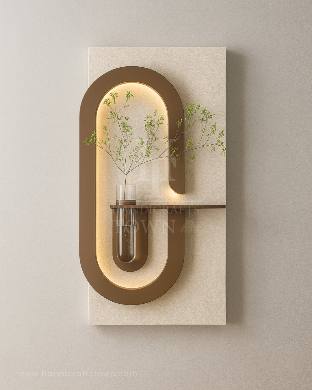 Bring harmony and sophistication to your space with the Calmora Arch Wall Art. Designed with a modern sculptural curve, it features a warm wooden finish and a sleek built-in vase accent that allows you to showcase delicate greens or florals. Soft backlighting enhances its graceful arch form, creating a serene glow that elevates any wall.