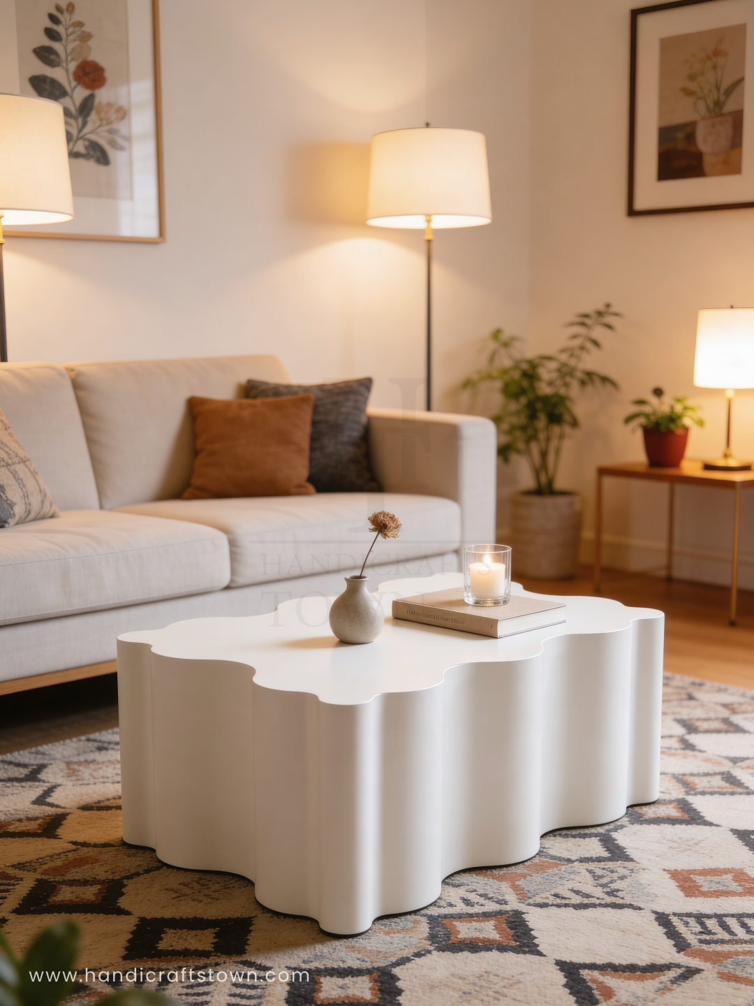 Transform your living room into a sanctuary of soft minimalism. The Dreamscape Center Table isn't just furniture; it’s a visual exhale. With its undulating scalloped edges and seamless matte finish, it mimics the fluid grace of a passing cloud. Whether you’re resting a morning matcha or your favorite art book, the Dreamscape brings a sense of weightless elegance to the heart of your home.