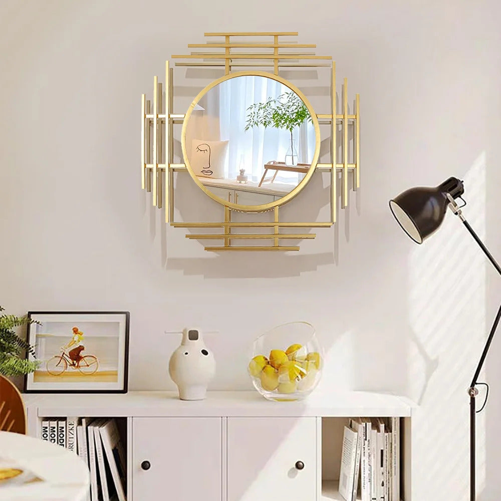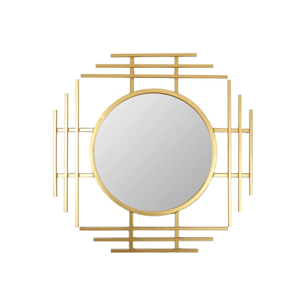 Introducing the Lattice Gold Wall Mirror, a captivating blend of modern design and classic aesthetics. Crafted with precision from durable iron, this exquisite piece is finished in a luxurious golden hue, adding a touch of opulence to any room. The mirror's intricate latticework frame creates a visually striking and unique design. The delicate lines intersect to form a captivating geometric pattern, drawing the eye and adding depth to your interior. The circular mirror at the center reflects light beautifully, creating a sense of spaciousness and enhancing the overall ambiance.