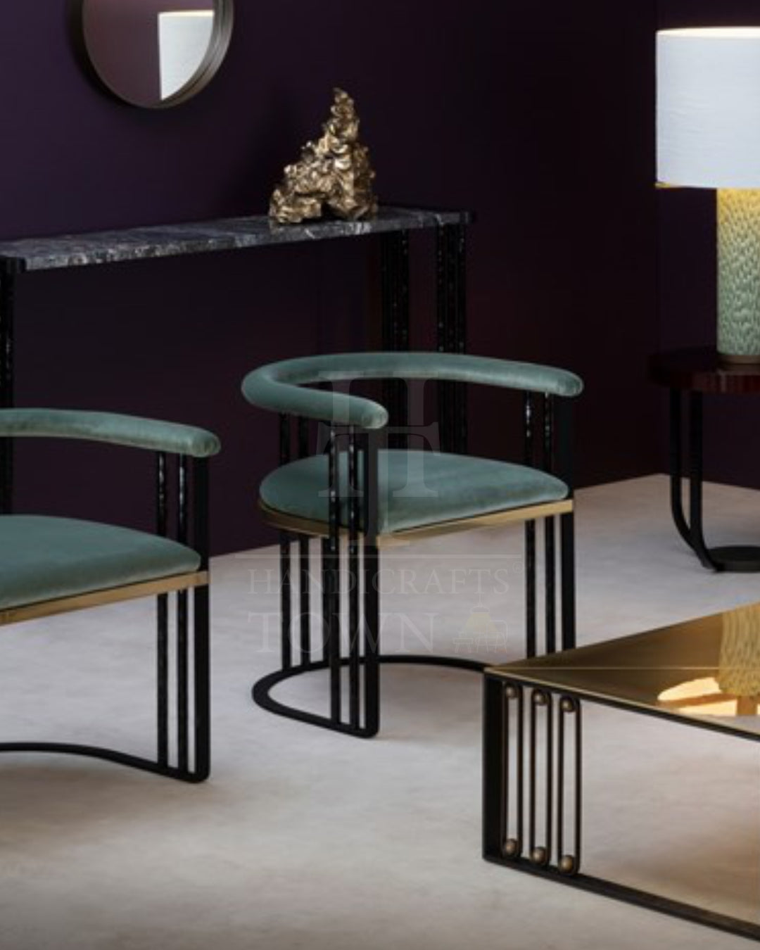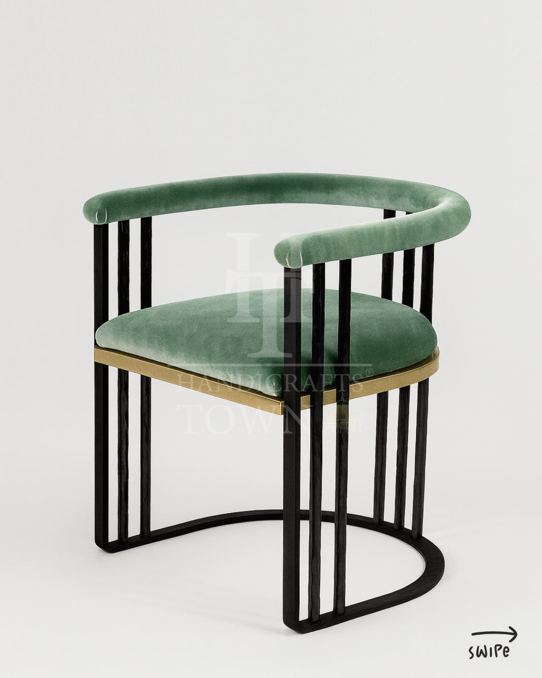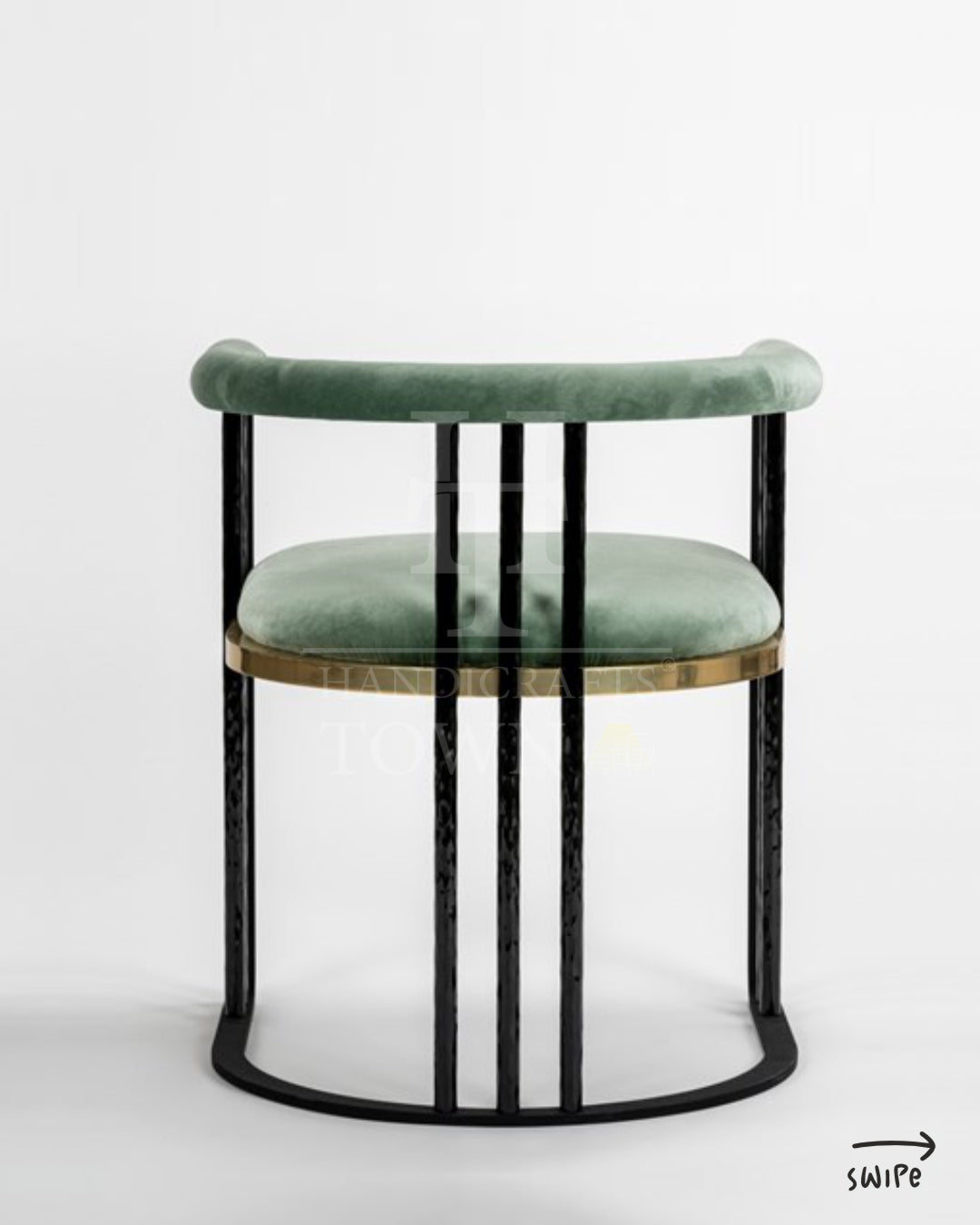 The Regalia Armchair is a statement of refined elegance, designed to bring timeless luxury into your living space. Upholstered in plush velvet with a smooth curved backrest, it offers unmatched comfort while exuding sophistication. The rich green tone, paired with a golden accent trim, beautifully complements its bold black metal frame — creating a striking balance between modern design and regal charm.