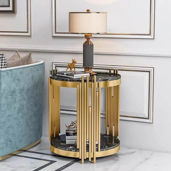 The double marble design adds a touch of luxury, while the sleek steel pipes provide a sturdy and modern foundation. The Sidekick End Table is not only visually stunning but also incredibly practical. Its spacious marble top offers ample room to hold your favorite books, magazines, remote controls, or a cup of tea. The bottom shelf provides additional storage space for keeping your essentials within reach.