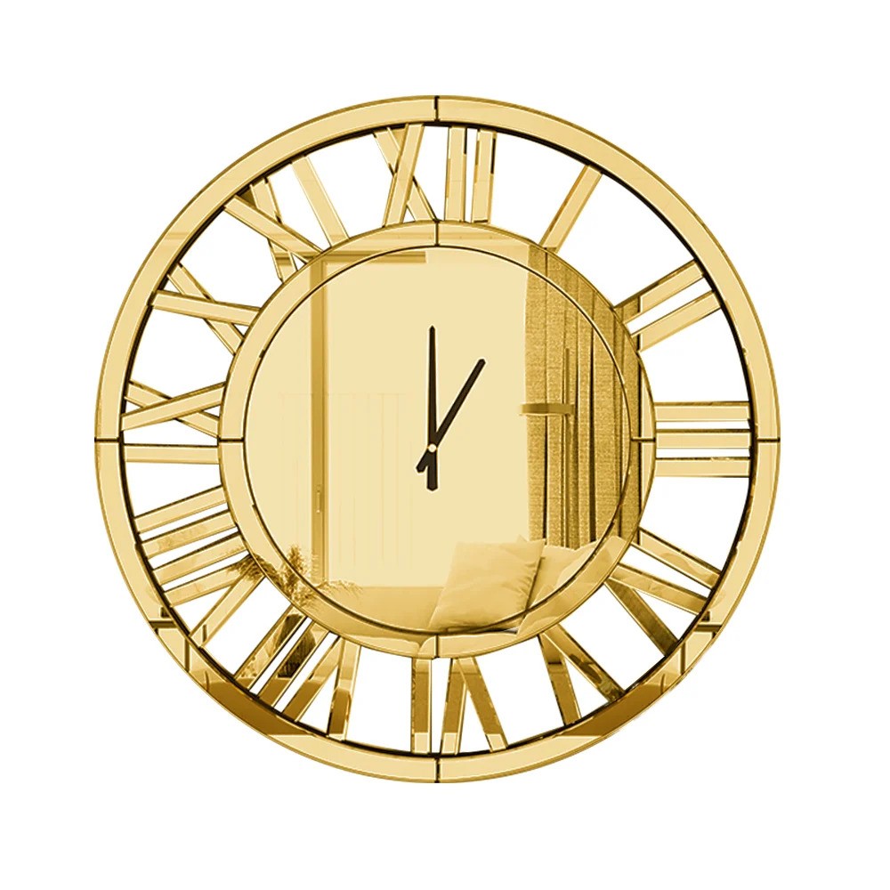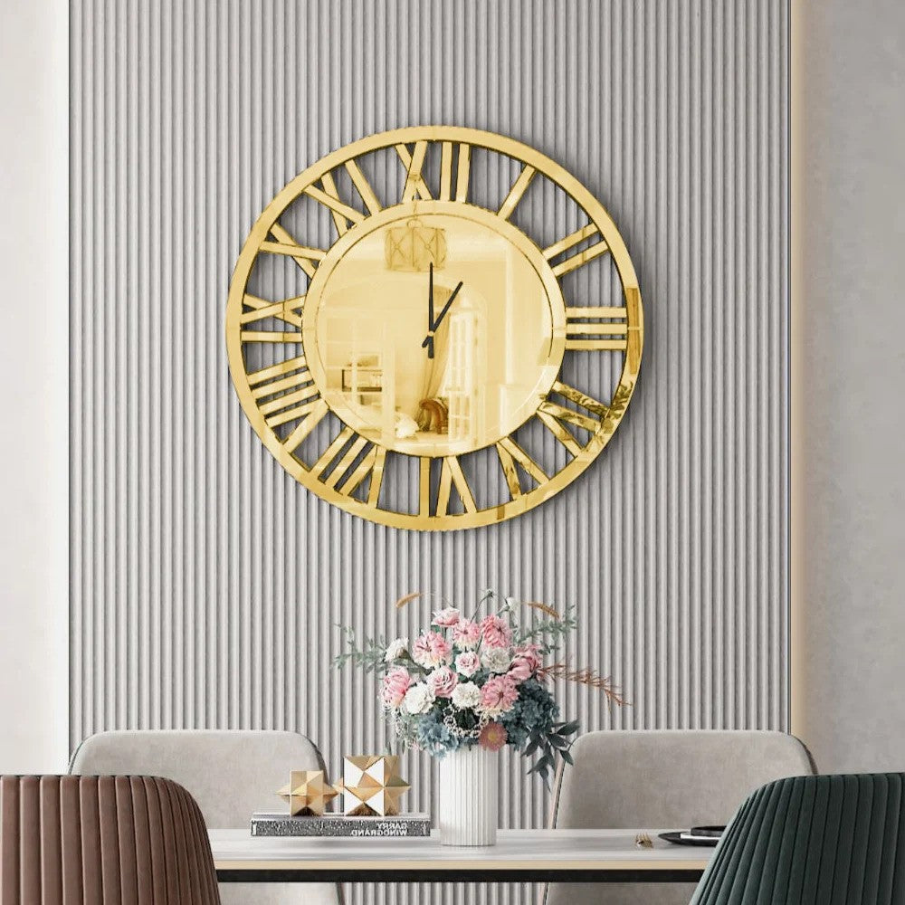 Introduce a touch of timeless elegance to your home with the Aurelius Wall Clock. Named "the golden one," this magnificent timepiece is a perfect blend of classic design and modern craftsmanship. Crafted from premium stainless steel and finished with a brilliant gold PVD coating, this clock offers more than just a luxurious appearance. PVD is an advanced finishing technique that creates a durable, scratch-resistant surface, ensuring your clock maintains its radiant luster for years to come. The design features bold Roman numerals arranged in a striking, open-frame pattern, while the sleek mirrored face adds a contemporary twist. This clever combination makes the Aurelius Wall Clock incredibly versatile—it can be the focal point of a modern living room or a sophisticated accent in a classic study.