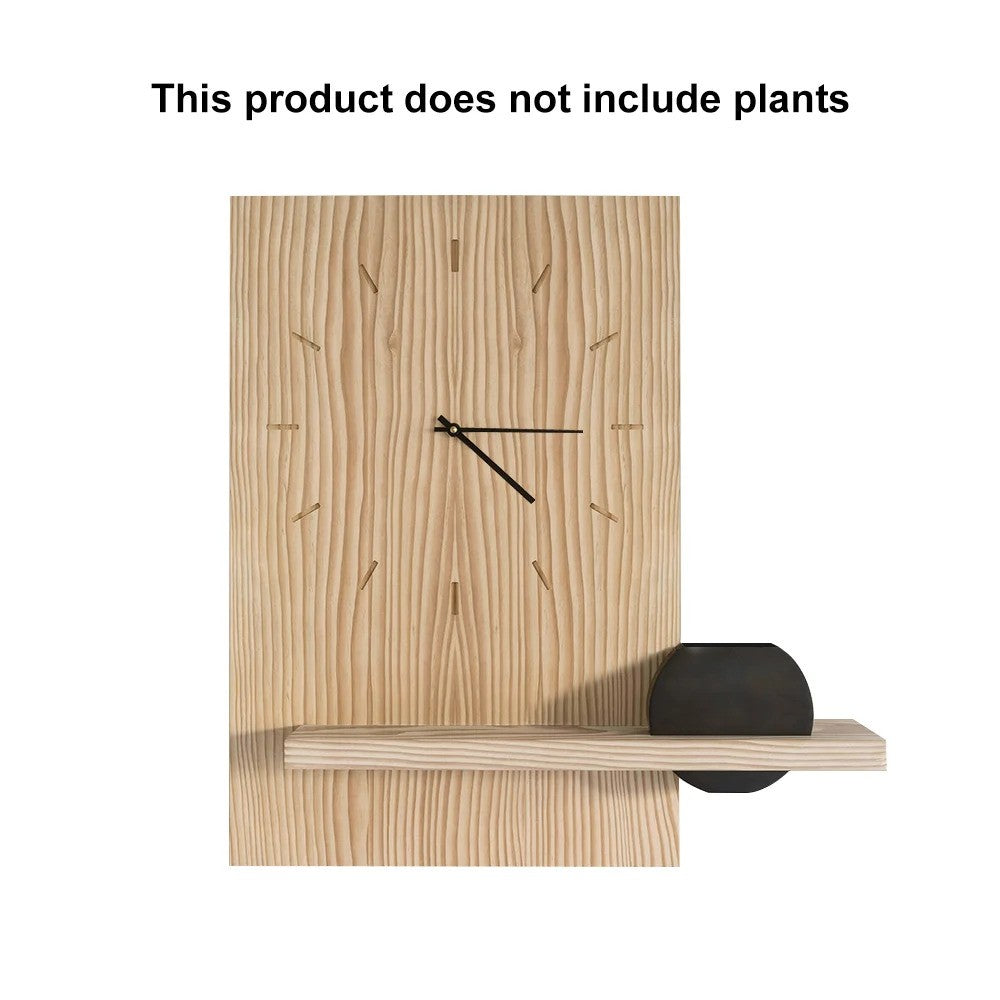 The Grain Wall Clock, a timepiece that celebrates the simple, timeless beauty of nature. Crafted from stunning natural pine wood, this wall clock is a testament to minimalist design. Its name, "The Grain," highlights the unique and beautiful patterns of the wood, ensuring that no two clocks are exactly alike. The clean, unadorned clock face with subtle markers allows the natural character of the pine to be the star. But its appeal goes beyond just telling time. A sleek, integrated shelf and a removable planter pot transform it into a multi-functional statement piece. Use the built-in storage space to display a small decorative item or let the included planter pot breathe life into your living area by holding a small succulent or air plant.