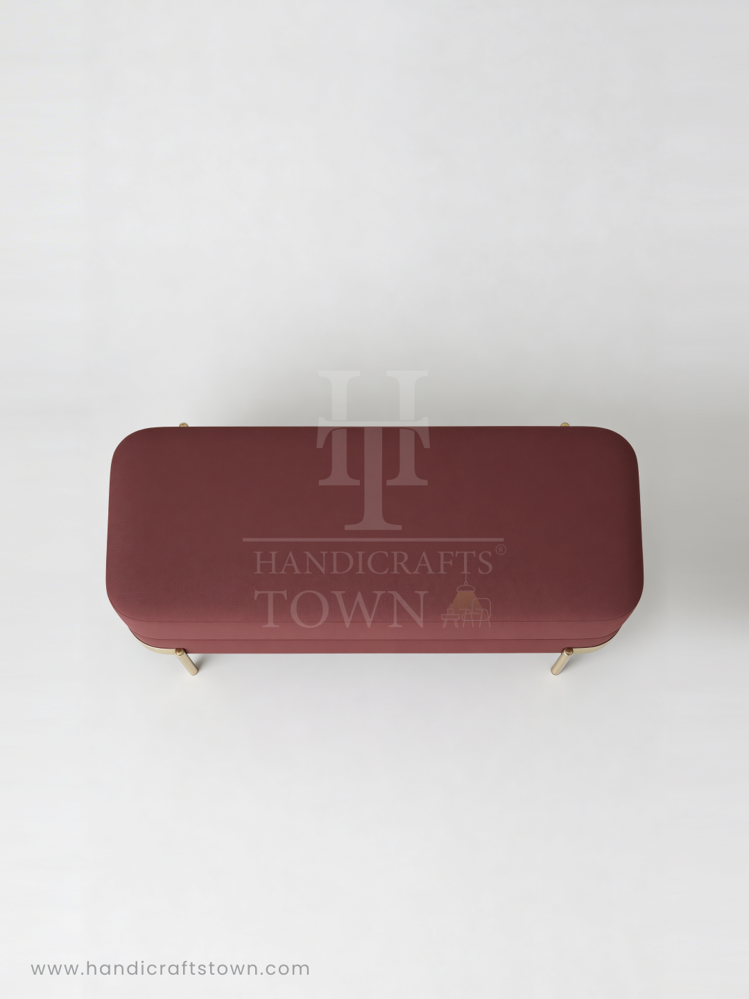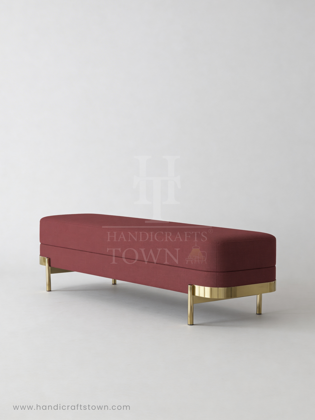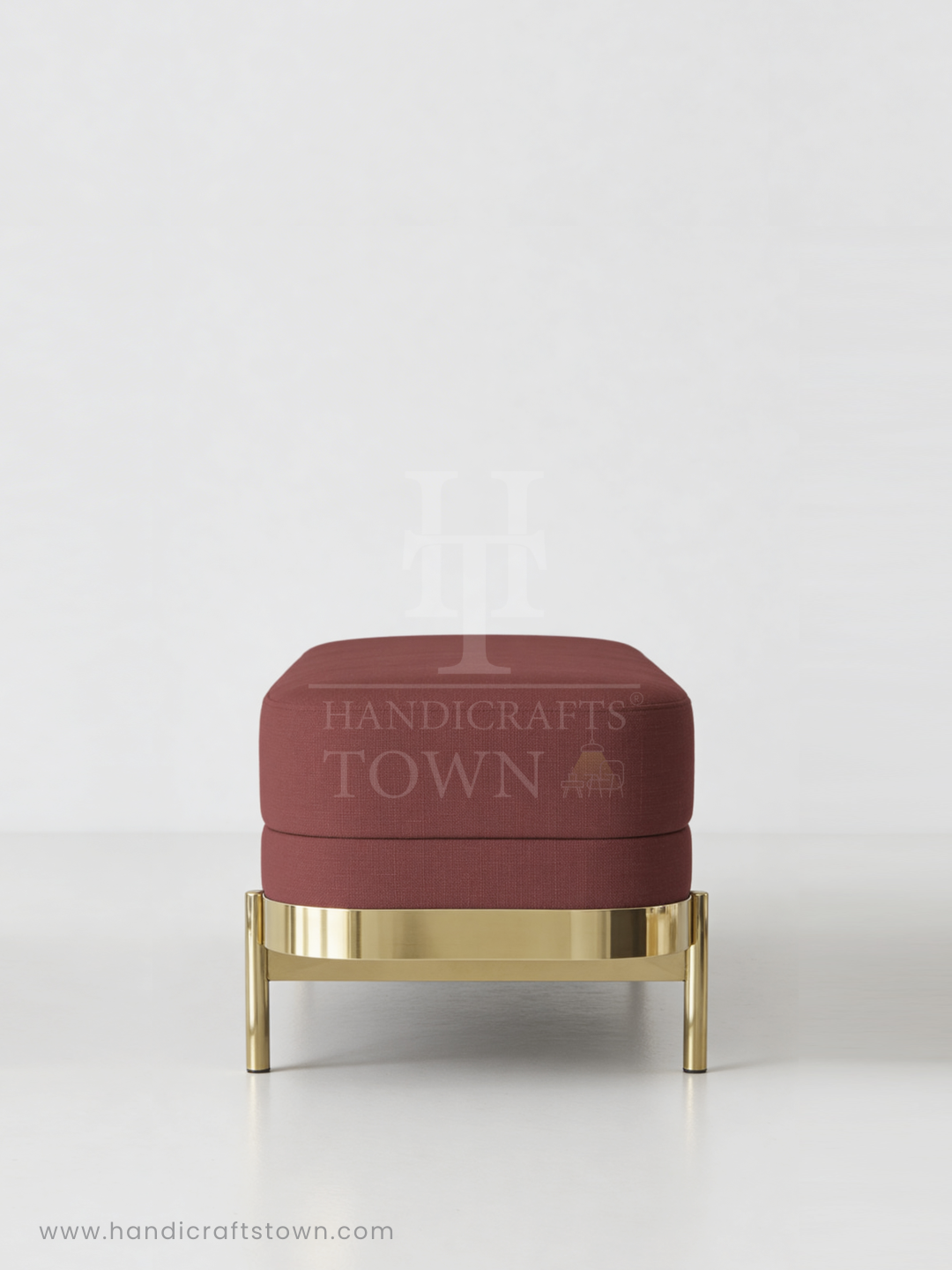 Elevate your entryway, bedroom, or living space with the Mesa Bench—a masterclass in "desert-modern" luxury. Inspired by the sprawling landscapes of the American Southwest, this piece anchors any room with its deep, terracotta-hued upholstery and striking metallic foundation.
