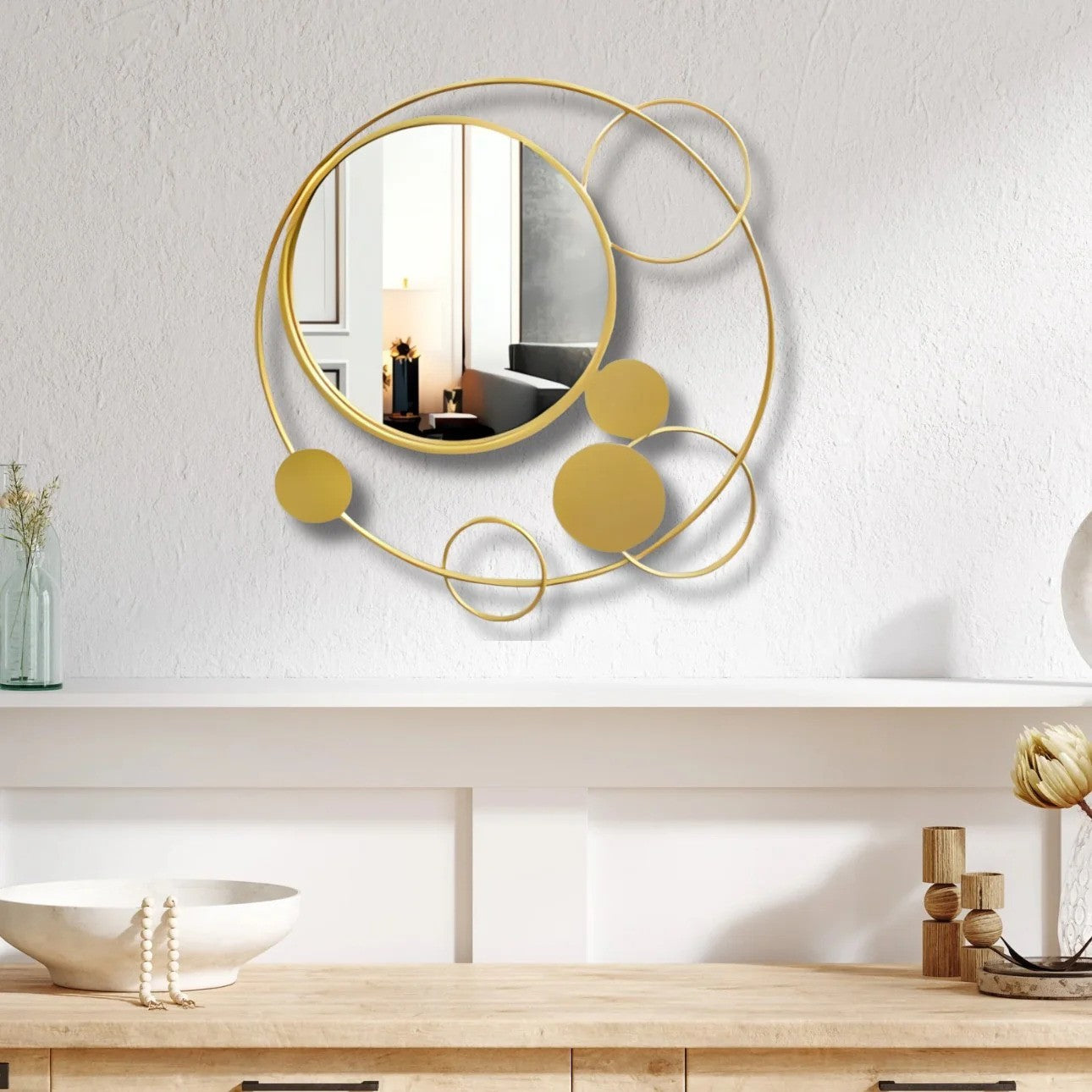 Add a touch of timeless sophistication to your interiors with The Orb Wall Mirror — a perfect blend of artistry and elegance. Crafted from premium wrought iron with a luxurious gold finish, this exquisite mirror features a captivating round design accentuated by interlocking circular motifs, creating a modern yet graceful aesthetic.