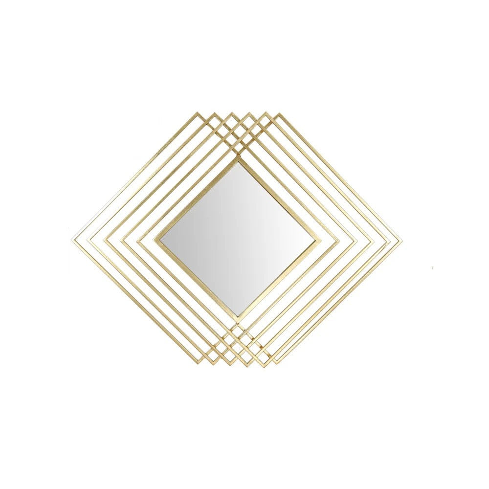 Transform your home décor with the Verona Geometric Wall Mirror, a stunning blend of modern artistry and timeless elegance. Crafted with premium wrought iron and finished in a luxurious gold tone, this exquisite mirror brings sophistication and depth to any wall it adorns. Its geometric layered frame design creates a mesmerizing visual effect, adding texture and dimension to your space. The diamond-shaped mirror at the center beautifully reflects light, making your room feel brighter, more spacious, and effortlessly stylish.